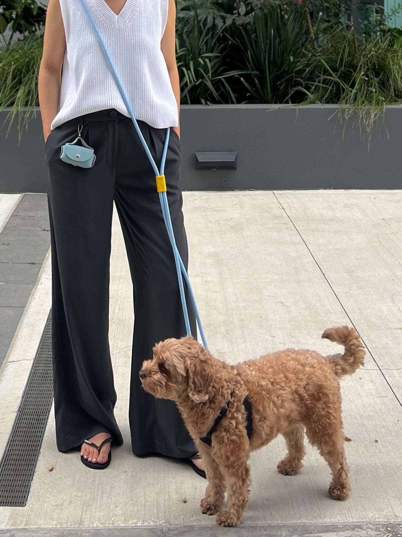 Vegan leather Poop bag holder - baby blue