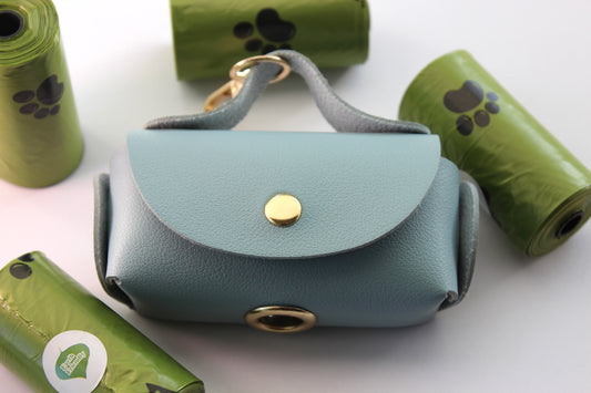 Vegan leather Poop bag holder - baby blue